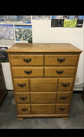 L.A. Period Furniture chest of drawers/dresser #c 505 so 159 ce. Mid century antique vintage 5 drawer dresser with original handles, all wood, hard to find, good shape. L=34”, W=18”, H=45” $300 obo