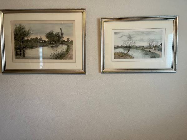 Vintage prints that look like etchings. Set of 2 seasons that look great as is, no issues, or new color mats to update. Bargain price as large frames alone would cost more.