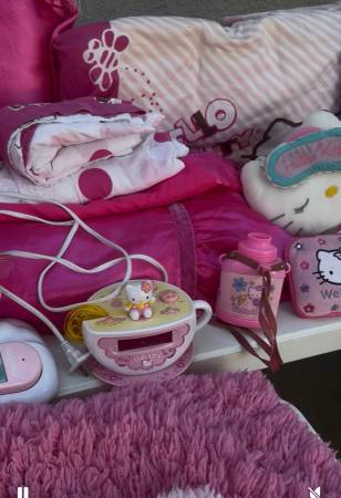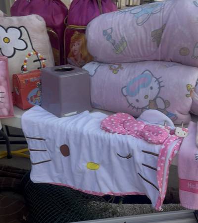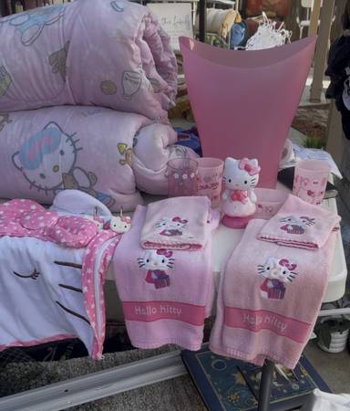 Selling two sets of Hello Kitty comforter sets, Hello Kitty phone, Hello Kitty tea cup alarm clock, throw rugs, and lots of Hello Kitty accessories…