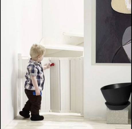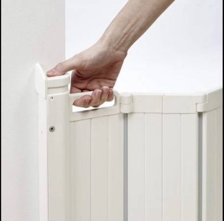 This is brand New still sits in original packaging BabyDan Guard Me Retractable Safety Gate for Spaces Between 21.7 to 36.2 Inches with Mounted Height of 28 Inches, White (Retails for $109.99 plus tax) Asking $60 only! New! DIMENSIONS: Standard gate fits doorways and spaces from 25.4”- 35” when mounted inside door frame. For mounting outside the door frame, gate fits 21.7" - 31.2". Additional 9.4" extensions available, but sold separately. Measurement prior to purchase will ensure the perfect fit! IDEAL FOR SMALL SPACES: Folds back on itself, making it ideal for tight spaces; Mounts to inside or outside of doorframes with included hardware; Max width of standard gate: 36.2 inches NO TRIPPING: No trip bar on the bottom to cause potential spills EASY OPERATION: Quick-release double safety latch is easy for an adult to operate with 1 hand SPECIFICATIONS: 100% PVC Free; Made in Denmark; Fitted inside a door frame: 25.4 to 36.2 inches (with Extend-A-Guard up to 45.6 inches); Fitted outside a door frame: 21.7 to 32.3 inches (with Extend-A-Guard up to 41.7 inches); Material: Plastic; Color: White; Dimensions (L x W x H): 35 x 2 x 28.5 inches; Weight: 8 pounds; (1967120)