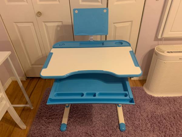 School Desk & Chair - Height Adjustable (Desk 21.3"-29.9") (Chair 12.6"-17.3") AGES - 3 to 10 Tilting Desktop Storage Drawer-Slides out for easy access Weight Capacity: Desk (165#), Chair...