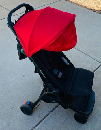 Easily fit into most carry on luggage units in planes. Fold in 2 stages, into a custom-fit, compact travel bag with an exposed handle, or attach a shoulder strap for easy carry on. Equipped with an on-board car seat adapter, nano converts to a travel system, accommodating most leading car seat brands (maximum load: 44 lb). In very good condition