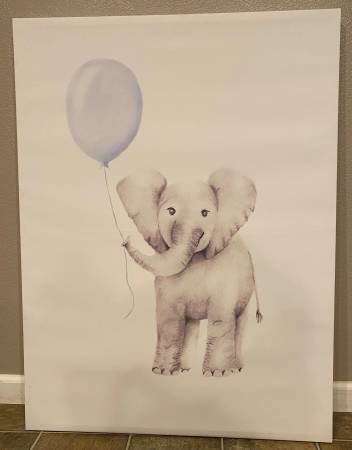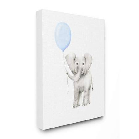 Selling a "Like New" The Kids Room by Stupell Baby Elephant with Blue Balloon Watercolor Canvas Wall Art.