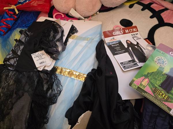 Assorted Brand New Girls Size 7/8 Halloween Costumes for $20/for all. Not selling separately. They appear to have all the accessories, but could possibly be missing one. I tested the left neon light one and it works. Everything is new unworn.
