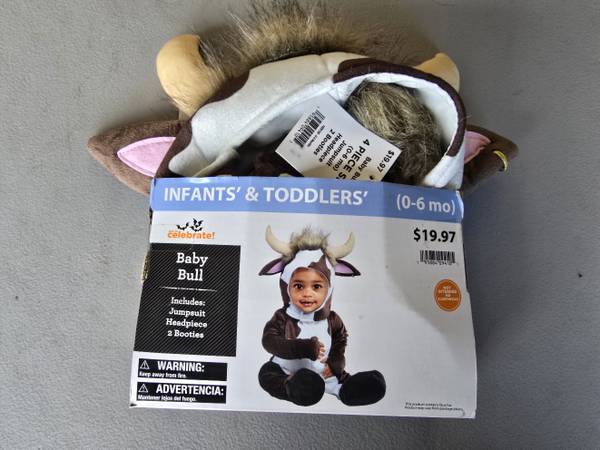 New Celebrate Baby Bull Baby Infant 0-6 Months Halloween Costume for $5. New unused. *The price is firm, please no offers. *I'm located near the Post Office 161W Elverta Rd in Elverta. I don't...