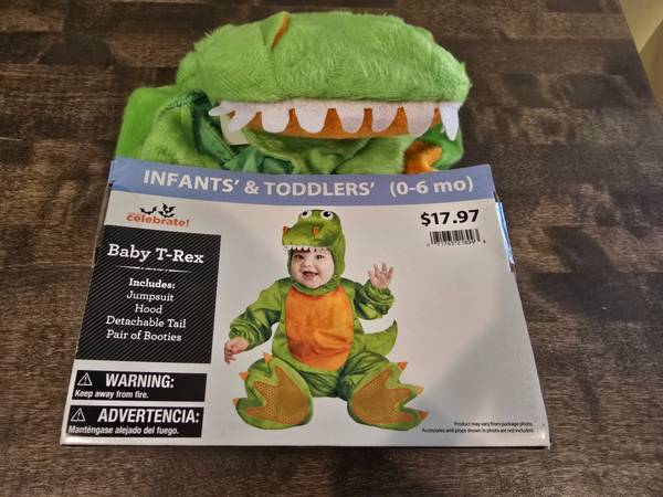 Brand New Baby Infant T-Rex Dinosaur Halloween Costume Jumpsuit Booties Hood 0-6 months for $5. New unused. Multiple available. *The price is firm, please no offers. *I'm located near the Post...