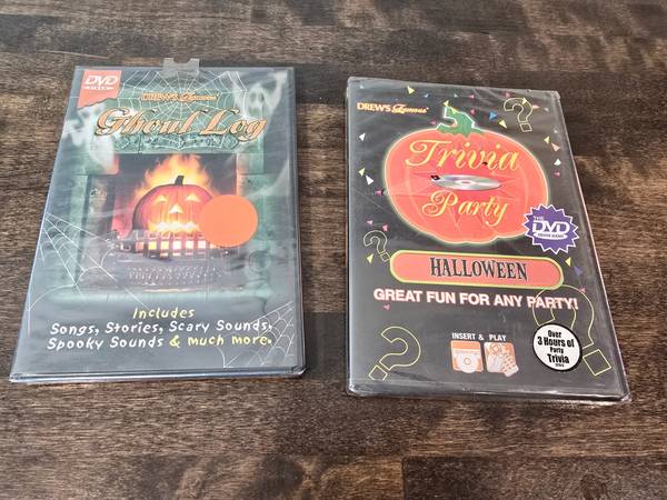 2 Brand New Halloween DVD's for $5/both. Drew's Famous Ghoul Log - Songs, Stories, & Spooky Sounds. & Trivia Party. *The price is firm, please no offers. *I'm located near the Post Office...