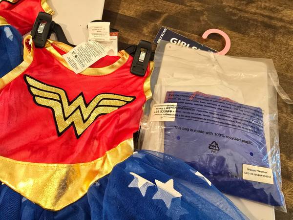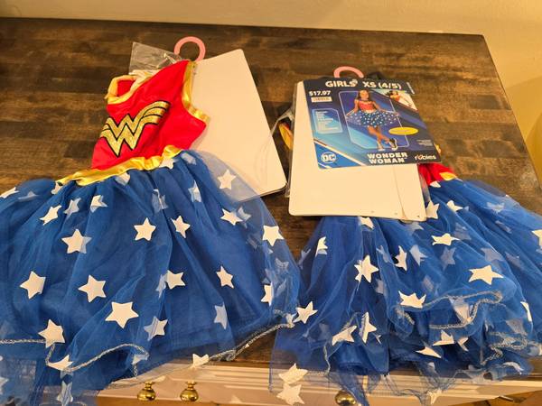 2 New DC Comics Wonder Woman Girl's XS 4/5 Halloween Costume for $5/both. One has retail packaging, the other doesn't. *The price is firm, please no offers. *I'm located near the Post Office 161W...