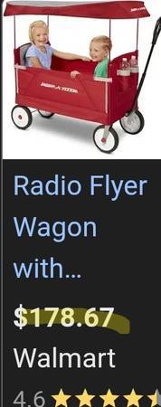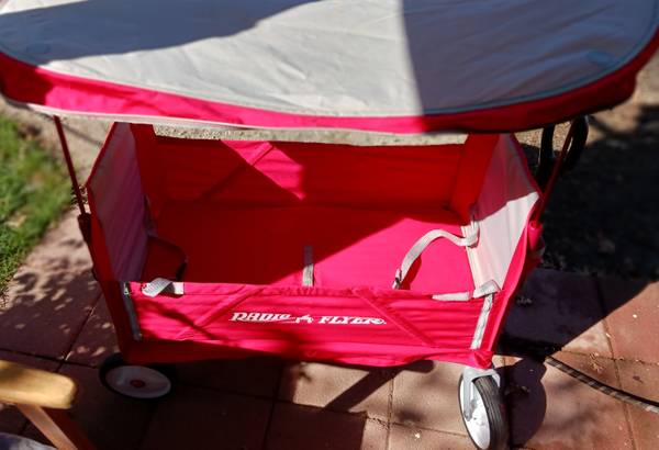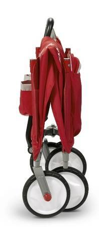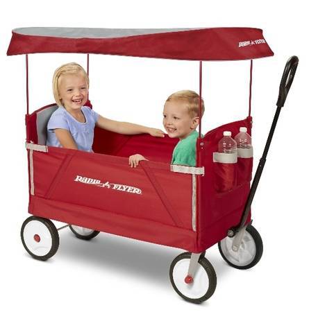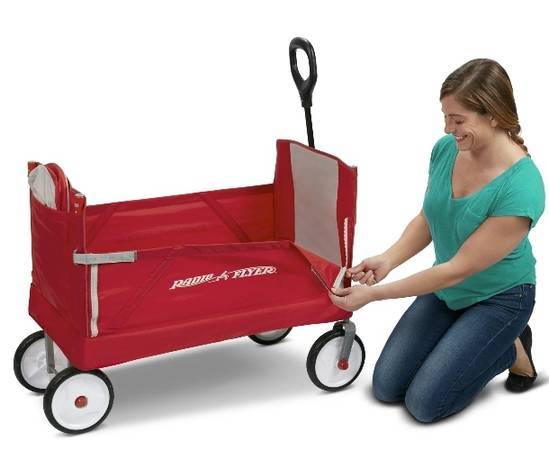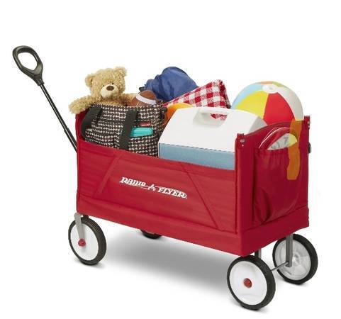 VINTAGE NAME ON A MODERN CHASSIS. SAME OLD SCHOL RED AND WHITE RADIO FLYER LOOK ON WHAT HAS BECOME STANDARD GEAR IN JUST ABOUT ANY BACK YARD OR CARGO SPACE.