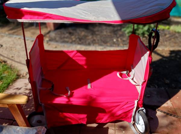 QUICK AND EASY ON/OFF FULL CANOPY. TALL WHEELS FOR A SMOOTH RIDE AND AN ADVANCED STEERING YOKE FOR MANEUVERING CHALLENGING SPACES. A WELL THOUGHT-OUT WAGON FOR THE PRICE.