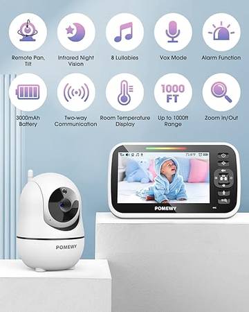 POMEWY Baby Monitor, 5” Large LCD Screen Video Baby Monitor with Camera and Audio.