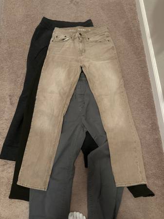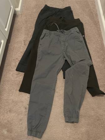 American Eagle: 9 pair of shorts (29” -30”), 3 sweats, 2 pants, 2 long sleeves, 6 shirts. All in neutral color n wore for 6 months only. No stains. No conttonballs. At the time my son was 5’7” or...