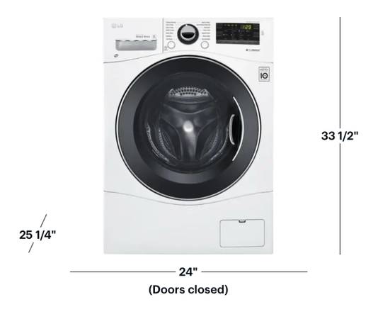 (3) LG front load washer and electric dryer set comes with built-in intelligence that takes the guesswork out of your laundry routine. At 24" wide for each appliance, they fit into almost any space. Despite being compact, this washer and dryer are loaded with all the latest technologies.
