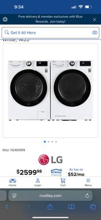 (2)LG Compact Smart Front Load Electric Dryer with Dual Inverter - 4.2 cu ft White (View Details)