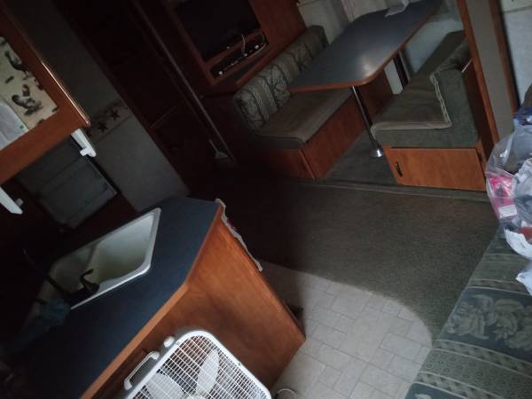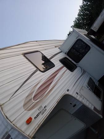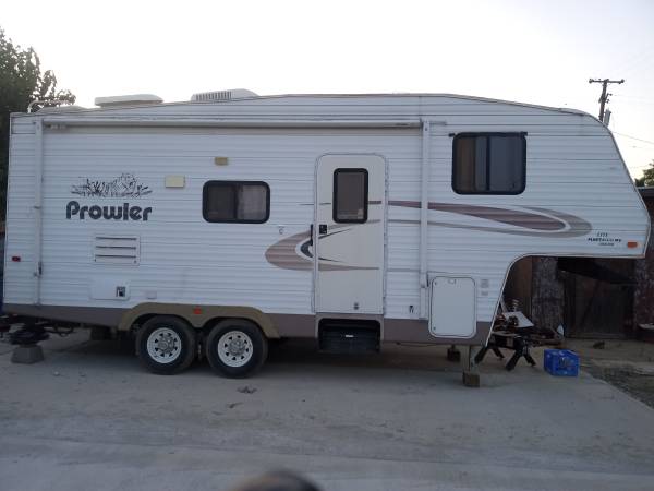 Hi, I have a fifth wheel camping trailer 2004 25 foot in good condition. Everything works very good. It has brand new tires brand new refrigerator and it has new batteries. It has one slide out fully self contained no problem whatsoever willing to trade for UTV or jet skis or a boat but they must be in really good condition because our trailer is in good condition or 6000 or best offer