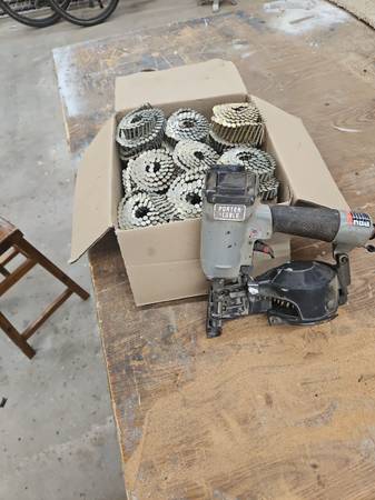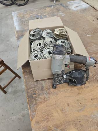 Porter cable roofing nail gun, practicly new. Almost a full box of 7/8"coil nails. 110.00