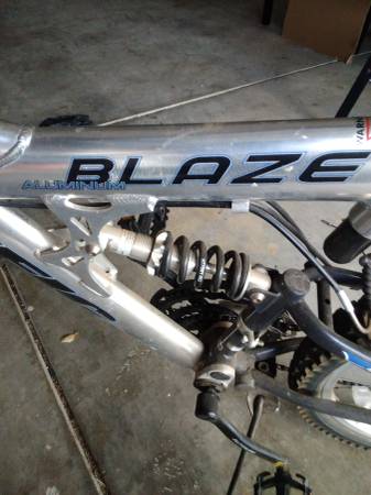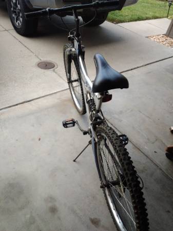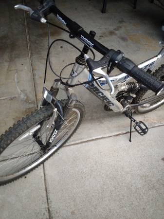 Silver Pacific Blaze Aluminum Flying V3 Frame 21 Speed Mountain Bike. Front suspension system.