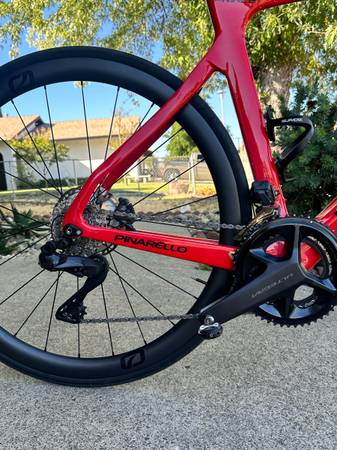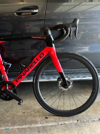 Selling my Pinarello price size 54.5 Fully carbon with carbon wheels 12 speed ultegra di2 (electronic) Beautiful color with metallic Bike is very fast and super light Normal wear and tear from use...