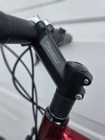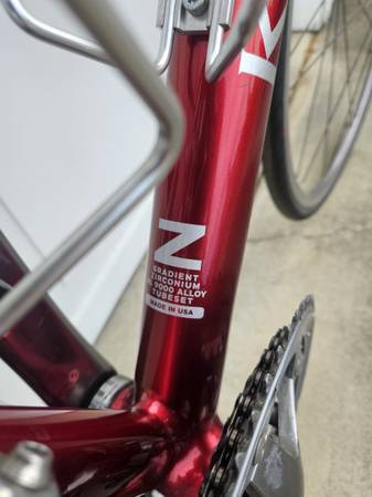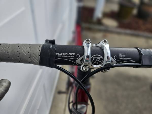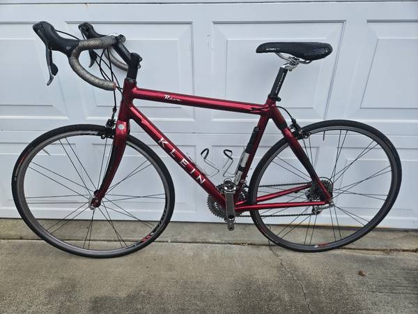For sale is a Klein Reve bike in good condition. I think it has a 54 cm frame. (I’m not positive of the size, but I am a bit over 5’ 8” and I can stand over the frame with decent clearance.) The bike has a Gradient Zirconium AL9000 Alloy Tubeset and a Bontrager HCM carbon fork.