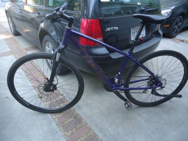 Used Trek Dual Sport 2 City Hybrid bike size M (medium) with Shimano drive train and hydraulic disc brakes , hardtail with front fork , right index shifter works but needs spring adjustment , $350...