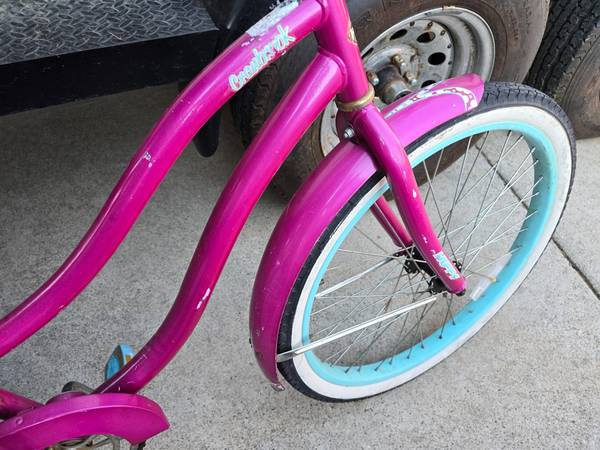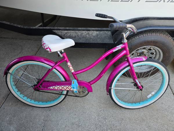 Huffy Cranbrook Girls Youth 24" Beach Cruiser Bike Bicycle for $60. It has normal wear with some scratches and blemishes. It rides well. The tires are a little weathered. I would say it's perfect for youth or small adults 5'4" or shorter.
