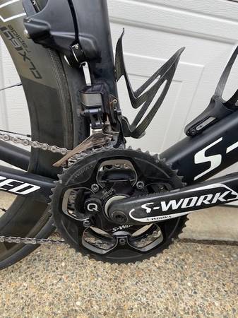 I am selling my 2016 Specialized Venge Vias S-works, Black. This bike has the rim brakes, the proprietary aero design. The brakes, pads and cables have been replaced and are new. It is equipped with Shimano Dura Ace Di2 components. It has a quark power meter which came stock on the bike. Carbon pedals are NOT included, but can be if you want to make me an offer. The bike is in good shape and probably has a couple thousand miles left on the chain and cassette before they need replacement. I have replaced both the front and rear derailures over the years. It does have one scratch on the frame. This bike was a $12K bike a decade ago. It is still very fast on the flat and weighs about 17.5 lbs. It has the Roval 64 wheel set. Fresh bar tape. Comes with charger of course.