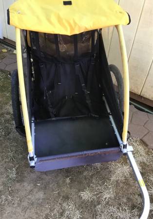 Here’s a very nice Burley Bee 2 Bicycle Trailer ! 20” wheels with capacity of 1 or 2 Children ! Folds up easy for storage and transporting ! Ready to Enjoy ! Yours for only $199. . Thank you, Ed