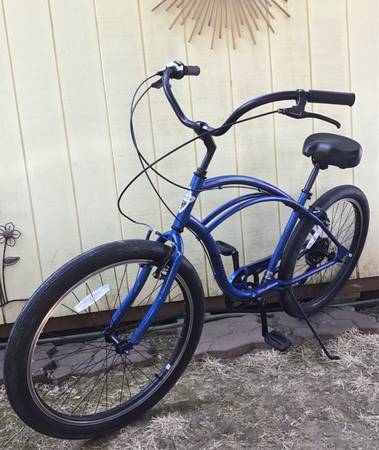 Here’s a very nice men’s Electra 7 speed beach cruiser bike ! 26” wheels with a 19” aluminum step over frame ! All adjusted in tuned up ! Ready to Enjoy ! Yours for only $399. . Thank you, Ed