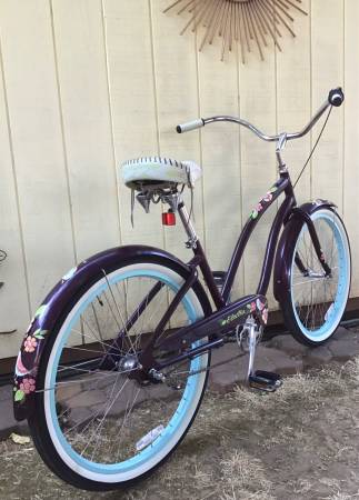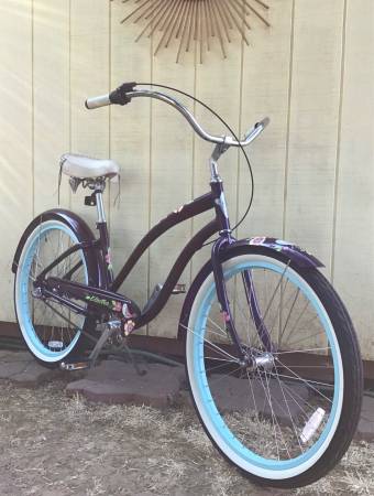 Here’s a very nice ladies Electra beach cruiser bike. 26” wheels with a Nexus 3speed internal hub, and a 16” step through aluminum frame ! All adjusted and tuned up ! Ready to Enjoy ! Yours for only...