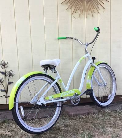 Here’s a very nice ladies Electra beach cruiser bike. 26” wheels with a Nexus 3speed internal hub, and a 16” step through aluminum frame ! All adjusted and tuned up ! Ready to Enjoy ! Yours for only...