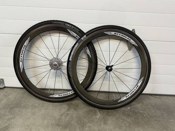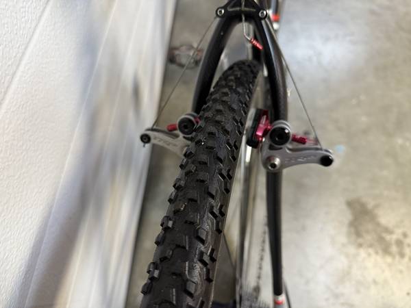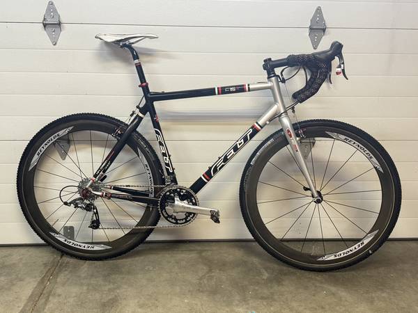 Felt 15x Cyclocross Bike. 57cm Aluminum frame with carbon seat stays. 17.9 lbs. SRAM Red levers and Red front derailleur. Brand new Force 10 speed rear derailleur. New SRAM chain and cassette. TRP brakes with new pads. 172.5 Shimano crankset with 46/38 Ritchey chainrings. Shimano BB. Time ATAC carbon/titanium pedals. Felt carbon seat post and seat. 110mm Bontrager stem with 42 cm TTT bars. New bar tape. 3 wheel sets: Reynolds Stratus DV carbon with Tufo tubeless tubulars, Felt LXR2 with new IRC 33 tubeless cx tires and Bontrager Race with new 35 Panaracer Gravel King gravel tires. All tires have new sealant. Frame is 57cm (57.5 cm top tube) and good condition . Best suited for rider 5'11" to 6'2". Bike is IMMACULATELY clean.
