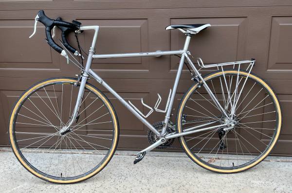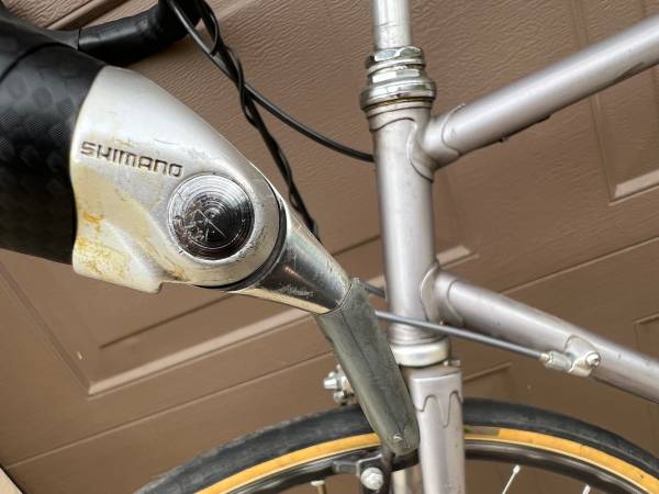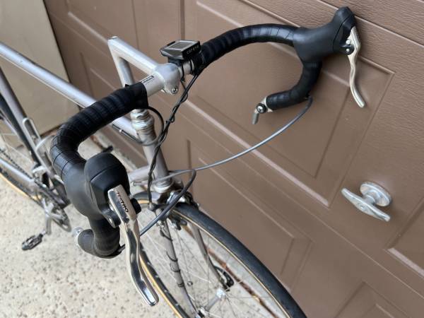 Bicycles of this quality in ready to ride condition don’t show up on Craigslist very often. 1970 Swiss Cilo frameset with Shimano Dura Ace bar end shift lever, headset, hubs, 9 speed cassette, and side-pull brakes - all Dura Ace, Shimano’s top of the line premium components. Front derailleur is Shimano XTR. Rear derailleur is Shimano Deore. Crankset is Suntour XC LTD triple with 48, 38, 24 rings. Middle ring is FSA 9 speed with ramps and pins for quick shifting. Small ring is the famous 24 tooth Ninja stainless steel granny gear.
