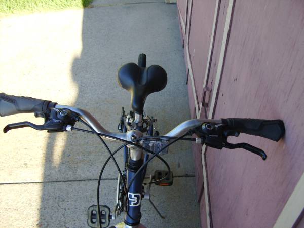 Rapid Fire shifting shifts smoothly to all gears. Almost new directional 85lb Kenda. Hybrid tires on alloy wheels. Articulated Handle Bar adjusts to many comfort positions. Shock absorber seat post seat is adjustable soft to firm. Aluminum frame is lightweight and paint is in excellent shape with very few use scratches. Wide platform pedals for riding with flip flops (not recommended). Overall bike is in very good condition. Bike has been cleaned, lubricated and tuned. Needs nothing to ride now. Mechanically in good shape, best to call or text, I only check Email mornings and evenings. Cash only.