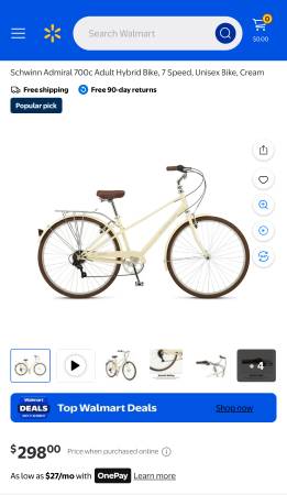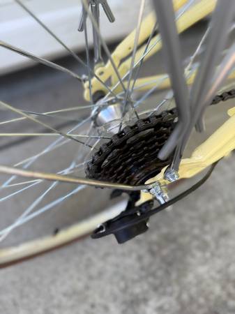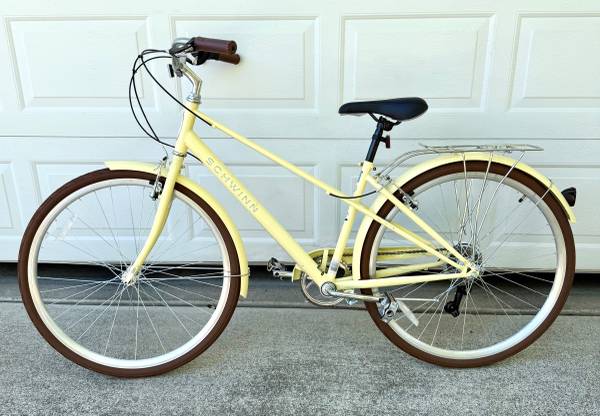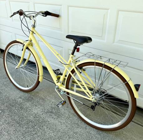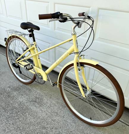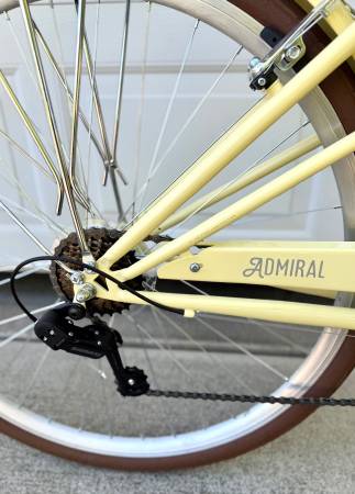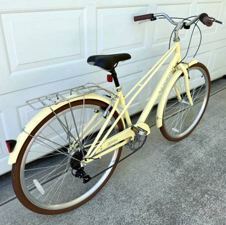 Like new Schwinn Admiral urban hybrid bike. Great for riders 5’ to 5’10”. Cream color. Shimano 7 speed. Front and rear alloy linear pull brakes. Padded adjustable saddle. 28" x 1.3/8" tires and high profile alloy rims. Features rear rack and front/rear fenders.