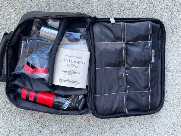 -Look accessory bag with the miscellaneous proprietary bits as well as owners manuals for the frame, seatpost, and crankset.