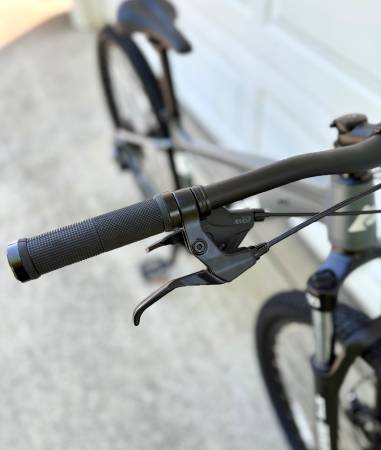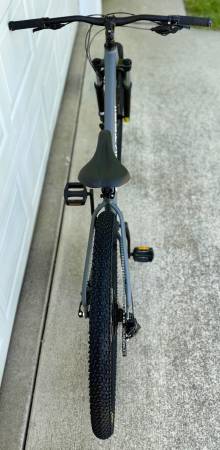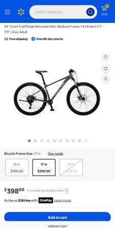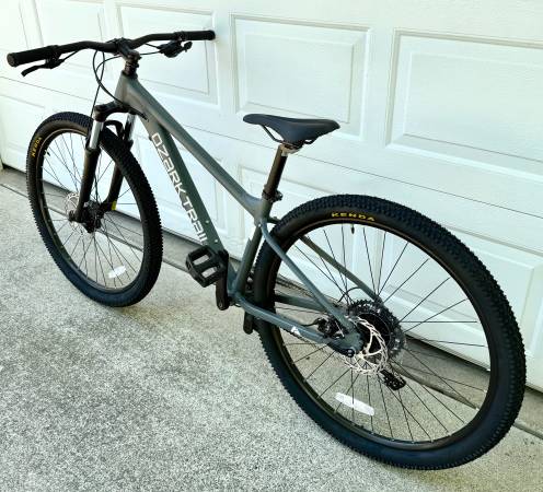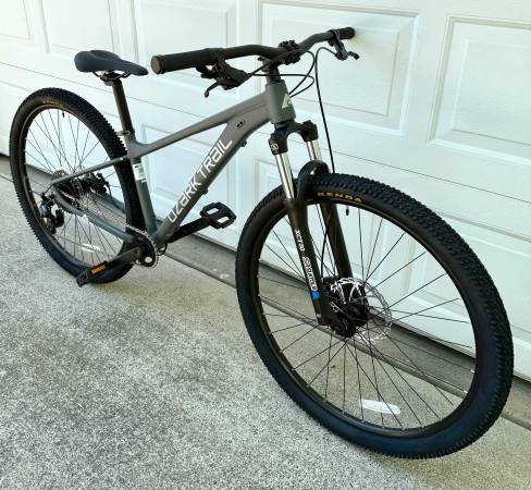 NEW - Ozark Trail Ridge 29" mountain bike features a lightweight 6061 aluminum frame, 9-speed rear derailleur. SR Suntour CM suspension fork and front and rear mechanical disc brakes. Padded adjustable MTB saddle. 29" x 2.35" Kenda tires and high profile alloy rims. Handlebar-mounted quick trigger shifters, internal cable routing. Small frame. Lightweight only 37 lbs.