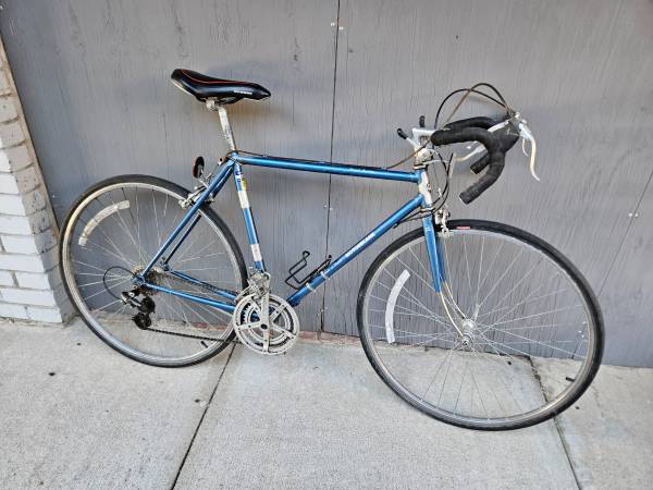 Selling my Motobecane Grand Touring road bike, it's a two owner bike and has been well taken care of throughout its life. I'm the second owner, and have replaced any components that were broken or on their way to being worn out. The 53cm medium frame should fit riders around 5'6 - 5'9. It has a bunch of little scratches and paint chips from years of riding, but the mechanical stuff works properly. Tires are good, braking and shifting work well, etc.