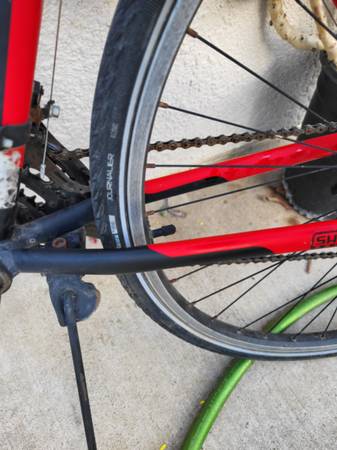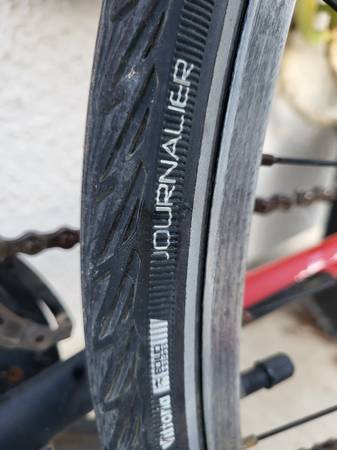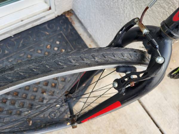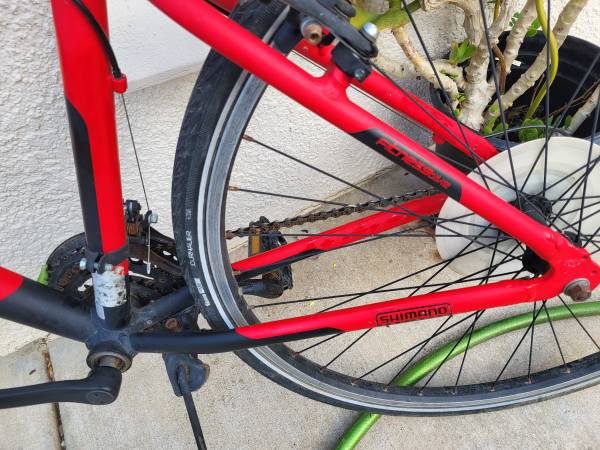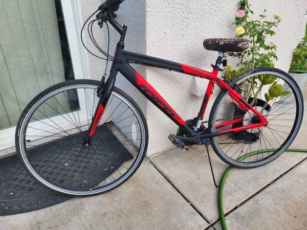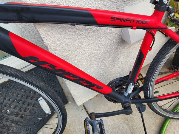 Hyper Spinfit 700C, red, new tires, 700x35C or 28x15x8x1 3/8 tire size, large frame, shimano drive train, 21 speed shifter.