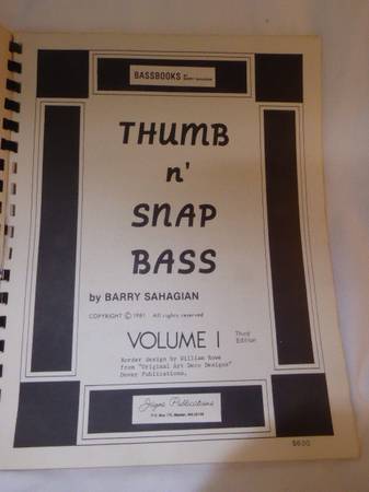 5. Thumb n' Snap Bass Vol 1. Bassbooks by Barry Sahagian. Jayne Publications. 1981. Plastic spine broken. Some marks on front cover. $10.