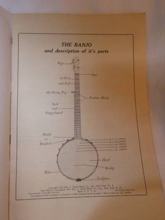 7. The New EZ Method for Banjo. 1922. Self Instruction and Teachers Use. No tears/holes/water damage. Lookslike a metal spine from another book left some rust marks on front cover. Otherwise, very nice condition. $6.