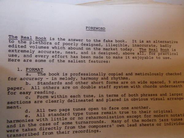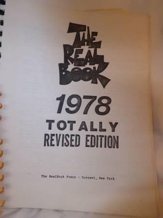 2. The Real Book. 1978 Totally Revised Edition (contains 13 additional tunes). Published by The Real Book Press, Syosset, NY. Early copy of famous "The Real Book": jazz/standard/tunes/leadsheets/transcriptions. Total of 504 pages (7 pages of intro/494 pages of tunes/13 pages of index. Front cover is torn but still intact. $50.