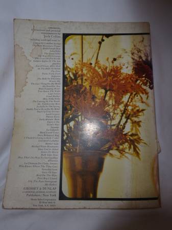3. The Judy Collins Songbook 1st edition. Comments/instructions/personal reminiscences by Judy Collins. 1969. 250 pages. Photos. Spine has bit of damage but still intact. $25.