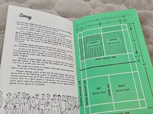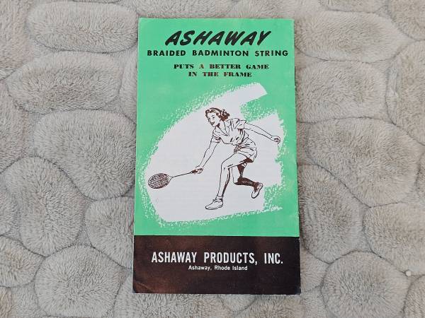 Vintage brochure / pamphlet put out by Ashaway Products, Inc. circa 1950s. Really nice vintage condition with very little wear to edges/corners. Slight water stain on back upper page about the size of a quarter (see photos). Perfect gift for the vintage sports collector. Get this great Vintage 1950s "Your Guide to Better Badminton" Booklet.