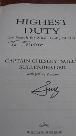 This is an autographed signed copy of the book "Highest Duty My Search for What Really Matters" by Captain Chesley "Sully" Sullenberger. He is the hero pilot that landed his jet aircraft in the Hudson River after a bird strike. Everyone on board survived. A great book for the collector, or as a gift for someone special.