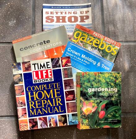 DIY home improvement and gardening books. I can attest they were a big help when I was doing the work that each book addresses, but I'm past these phases in my home projects. $5 each or $20 for the whole pile.
