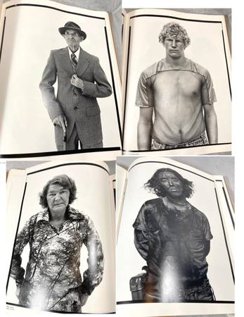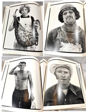 Hard cover, dust jacket included, 2nd printing, printed in Japan 1985. 120 full-page B&W photographs depicting people at country fairs, rodeos, mining camps, drilling sites, and even a slaughterhouse - men and women of the American West who work at hard, everyday jobs. Avedon introduces the volume with an essay on his working method and portrait philosophy. Laura Wilson, who accompanied Avedon and his team, provides a journal of their travels, between 1979 and 1984.