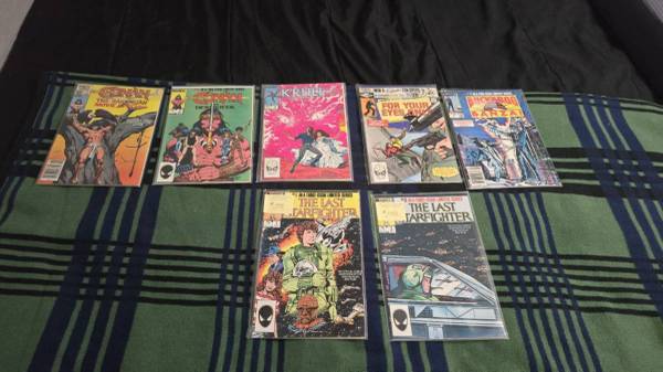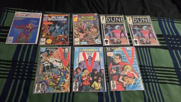 Motivated to sell. Trade for guitar or amp/music gear There are lots of doubles. This group contains mostly: Indiana Jones Doctor who Robotech Hitman There is a stack of other 80's stuff like: Conan...