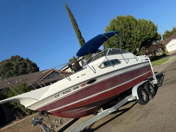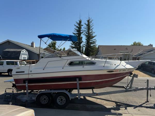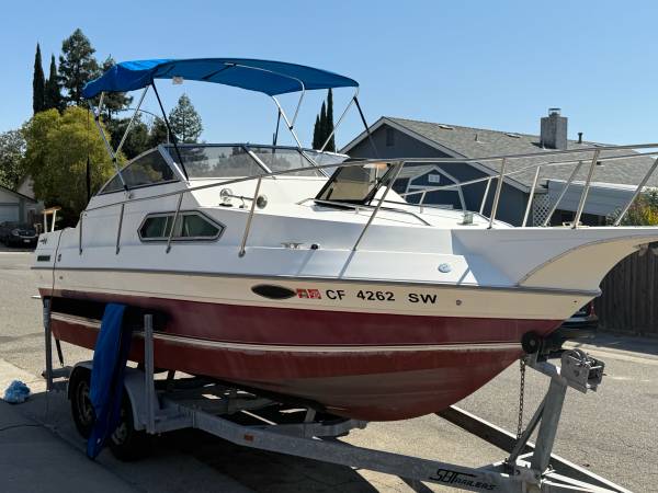 Great year around boat! Has a Volvo I/O dual prop. Runs good and shifts good. Just rebuilt Trim rams earlier this year. Currently registered. Don’t have time for it. Hot water heater, Bimini, top, shower, sink, stove, $4800 obo any questions just ask.