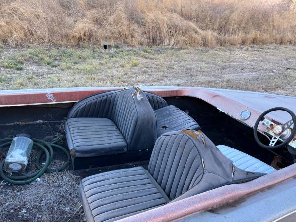 Just an old boat , could be a good little fishing boat for someone. Not sure if the motor runs, never worked on it.
