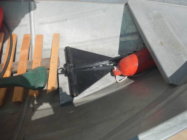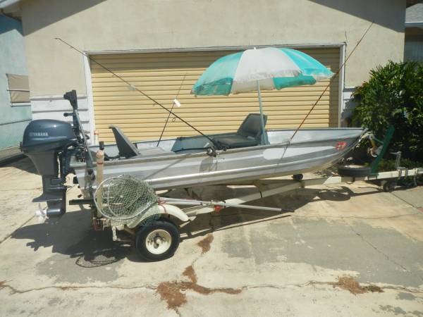 all of the equipment shown in the second photo, plus 4-fishing poles, 2 complete tackle boxes, 3 capture nets, paddle, custom boat cover. Brand new Yamaha F9.9 four stroke outboard motor, (never used) 3ft throttle extension, Eagle Super ID Sonar with travel kit, 12 V. battery and home charger. New gas tank and hoses. Has clear titles and current registration. Mussle sticker. Ed will take phone calls "only".